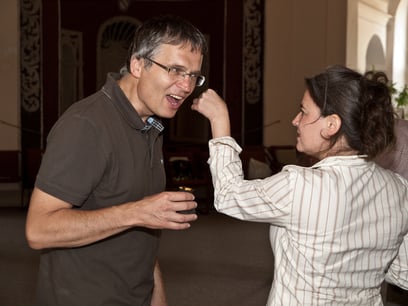 Das Besondere an den rasselnden Tassen, Tellern und Bechern ist, sie sind doppelwandig, aus einem Stück gedreht. In dieser doppelten Wand, rollen hunderte, handgeformte Klangkügelchen aus gebranntem Ton. Es entsteht eine sich bewegende, klingende Innenwelt, die die Gefäße zum Leben erwecken. Es ist ein kleiner Zauber, dieses Seelenleben zu erfahren, sobald man daraus trinkt oder isst.